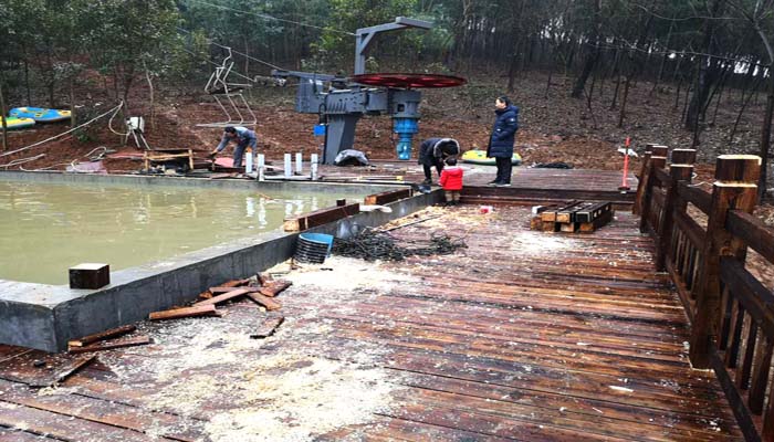 施工中的玻璃水滑道漂流